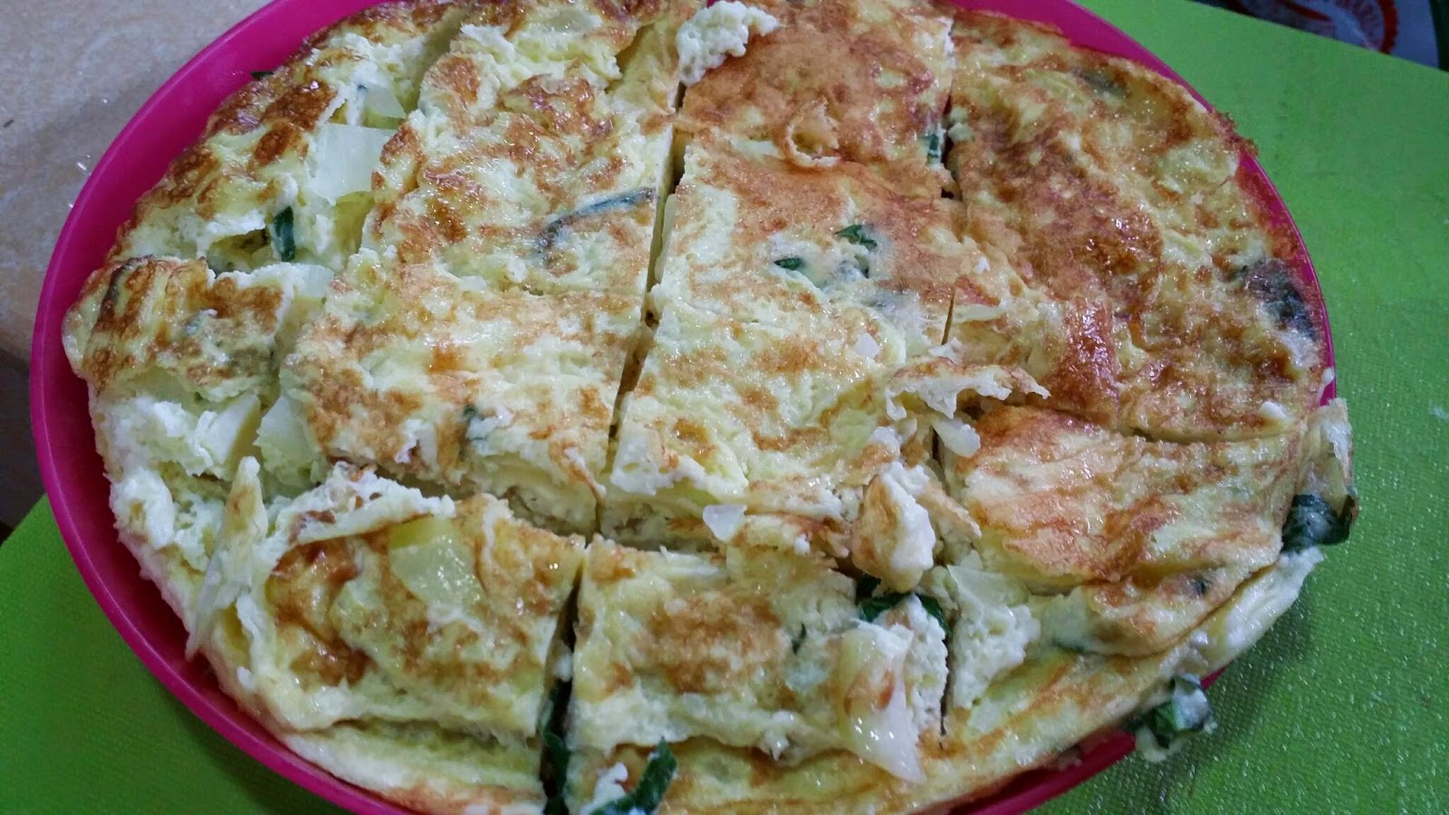 Pukul telur dengan garam. Campur semua bahan lain dan pukul rata. Goreng.