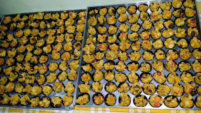 Bakar dalam oven yg telah dipanaskan suhu 170'C selama 8-10 minit.Sejukkan dan simpan dalam bekas kedap udara.
