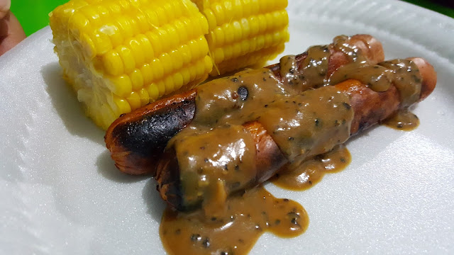 Bbq malam ni cuma ada lamb, ayam, sosej dan sotong...pastu jagung rebus skit. Pencicahnya kali ni saya terrajin sikit nak buat sos lada hitam......hehehehhhh......bukan la rajin sgt tapi sos bbq special tak cukup jadi topup la dengan sos lada hitam ni.